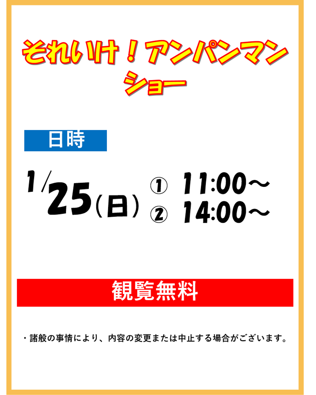 【2026年1月25日(日)】それいけ!アンパンマン ショー