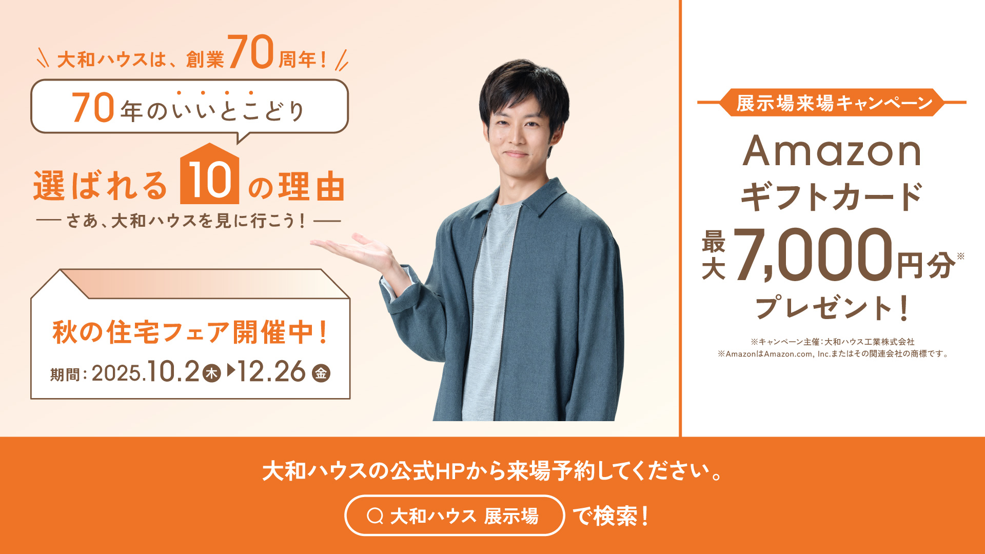 当社公式WEBサイトから来場予約の上、住宅展示場に初めてご来場の方にAmazonギフトカード4,000円分プレゼント!