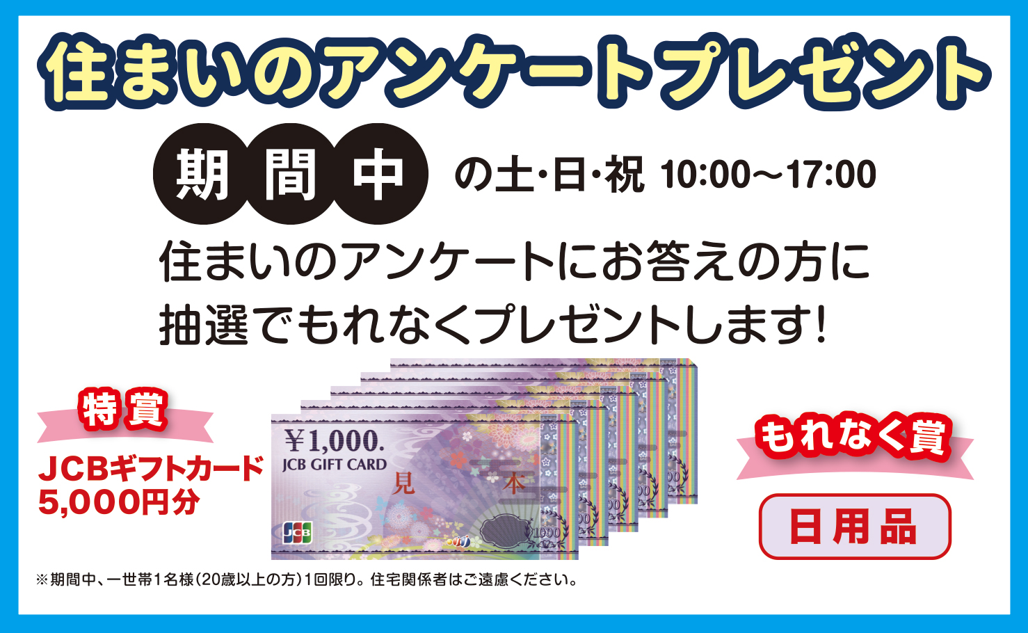 住まいのアンケートにお答えの方に抽選でもれなくプレゼントします!