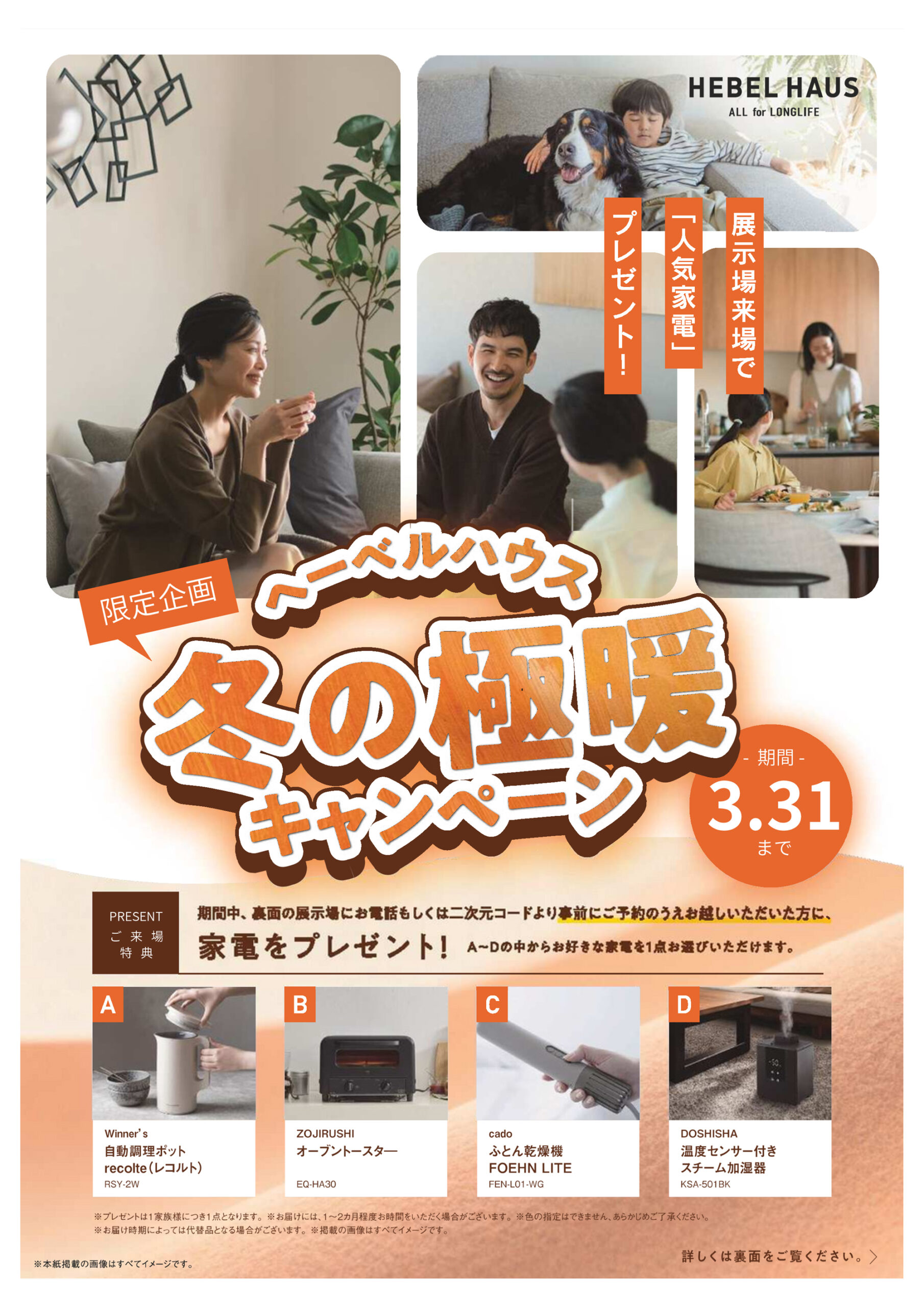来場予約の上、暖かいヘーベルハウスのご見学と暖かい家電をゲットしましょう!