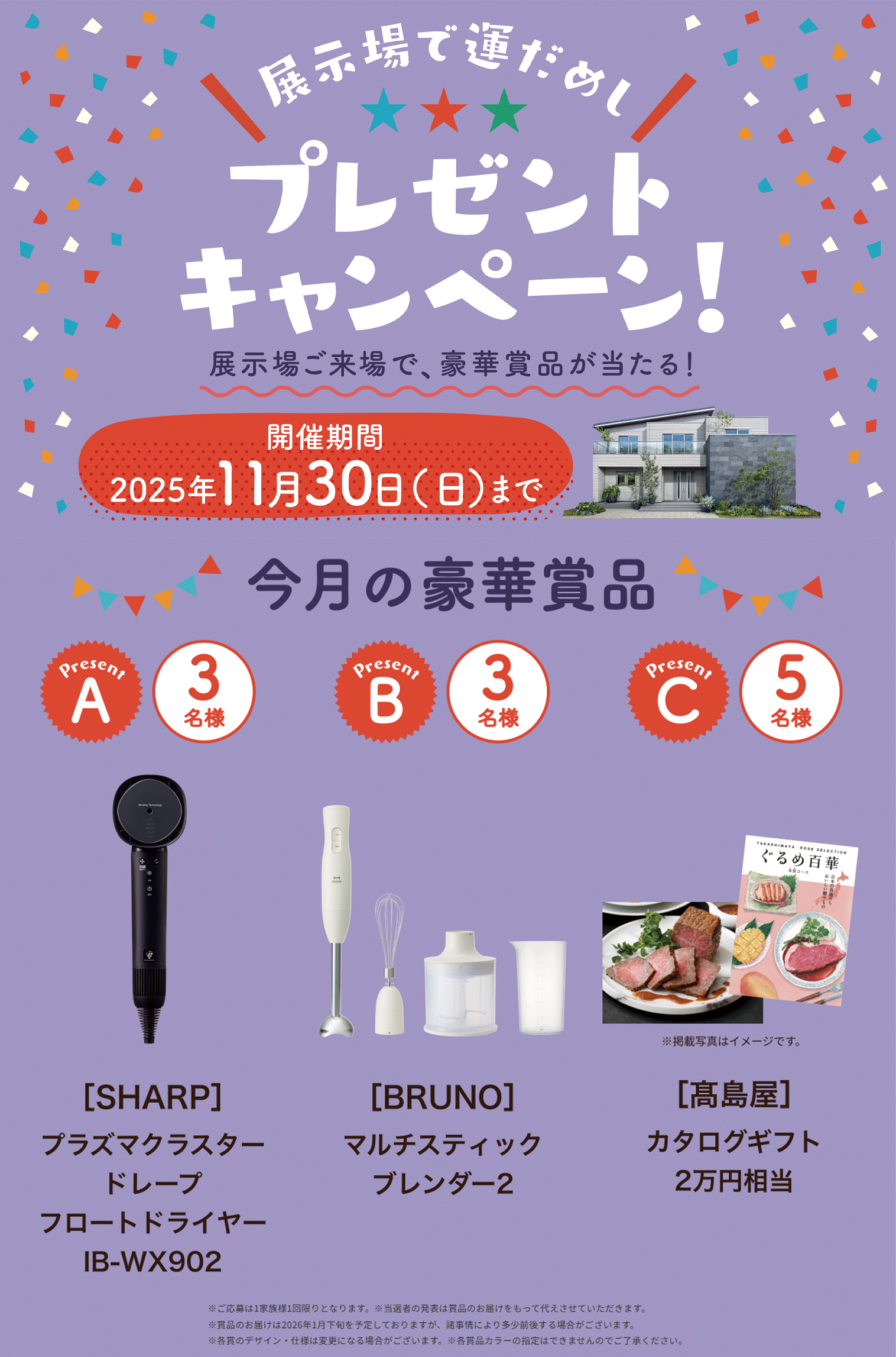 展示場ご来場で豪華賞品が当たる!