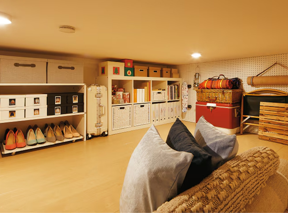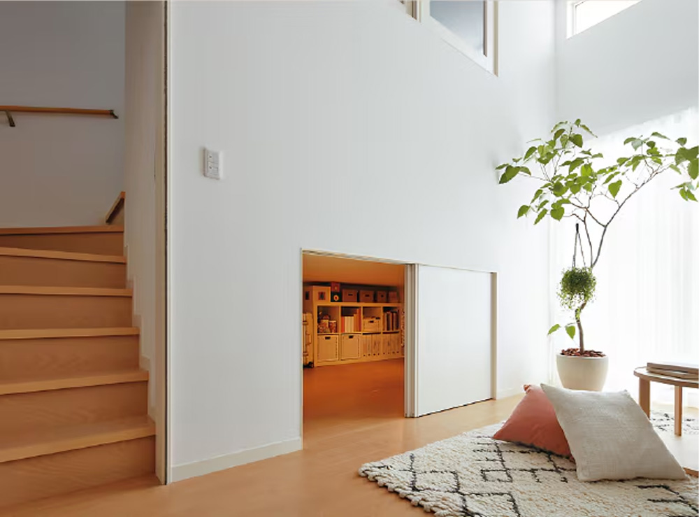 収納悩みを解決しながら、高天井や高窓との相乗効果で、