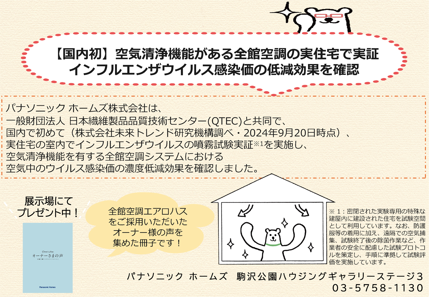 パナソニックホームズの全館空調はウイルスや花粉も低減させます!!