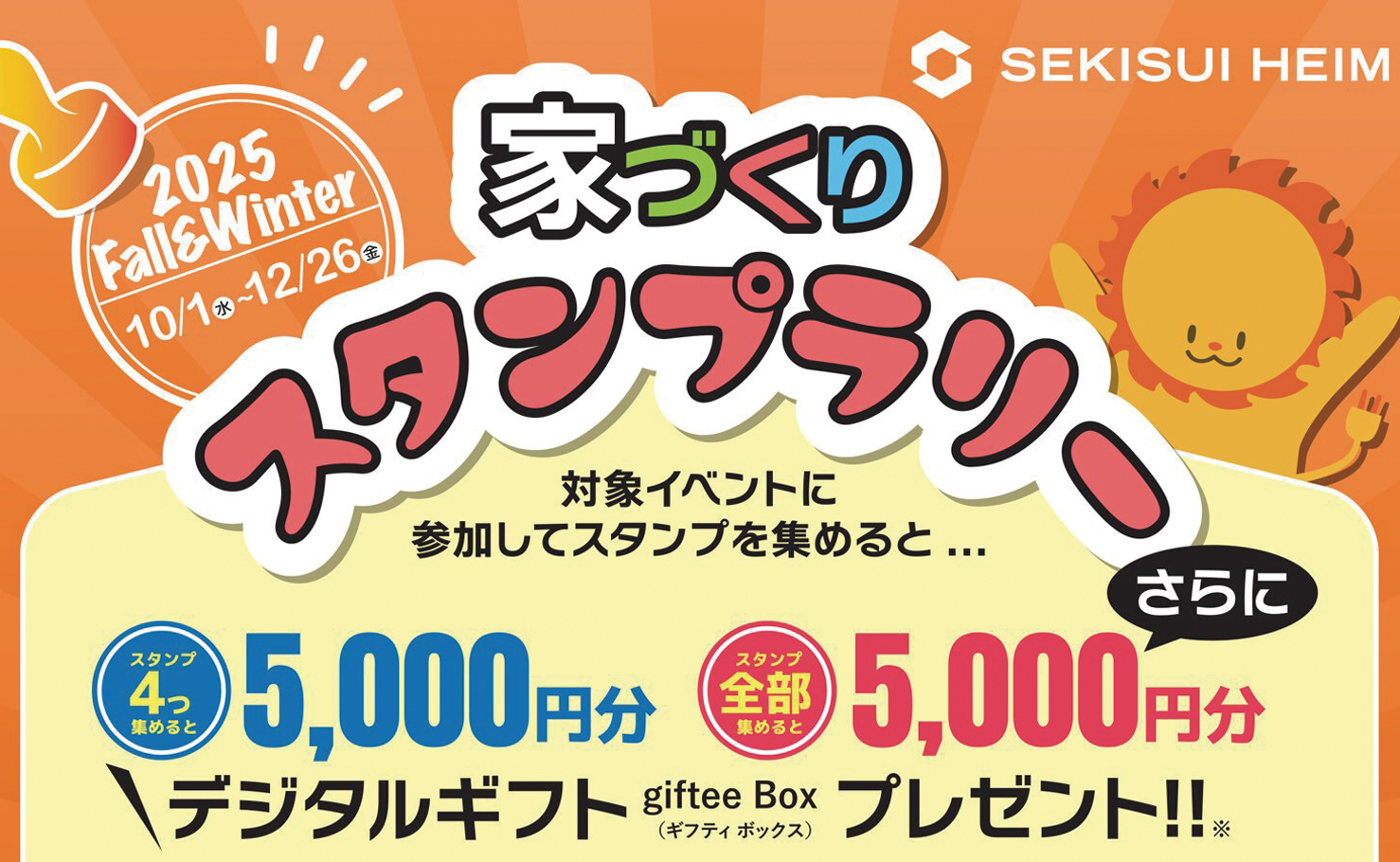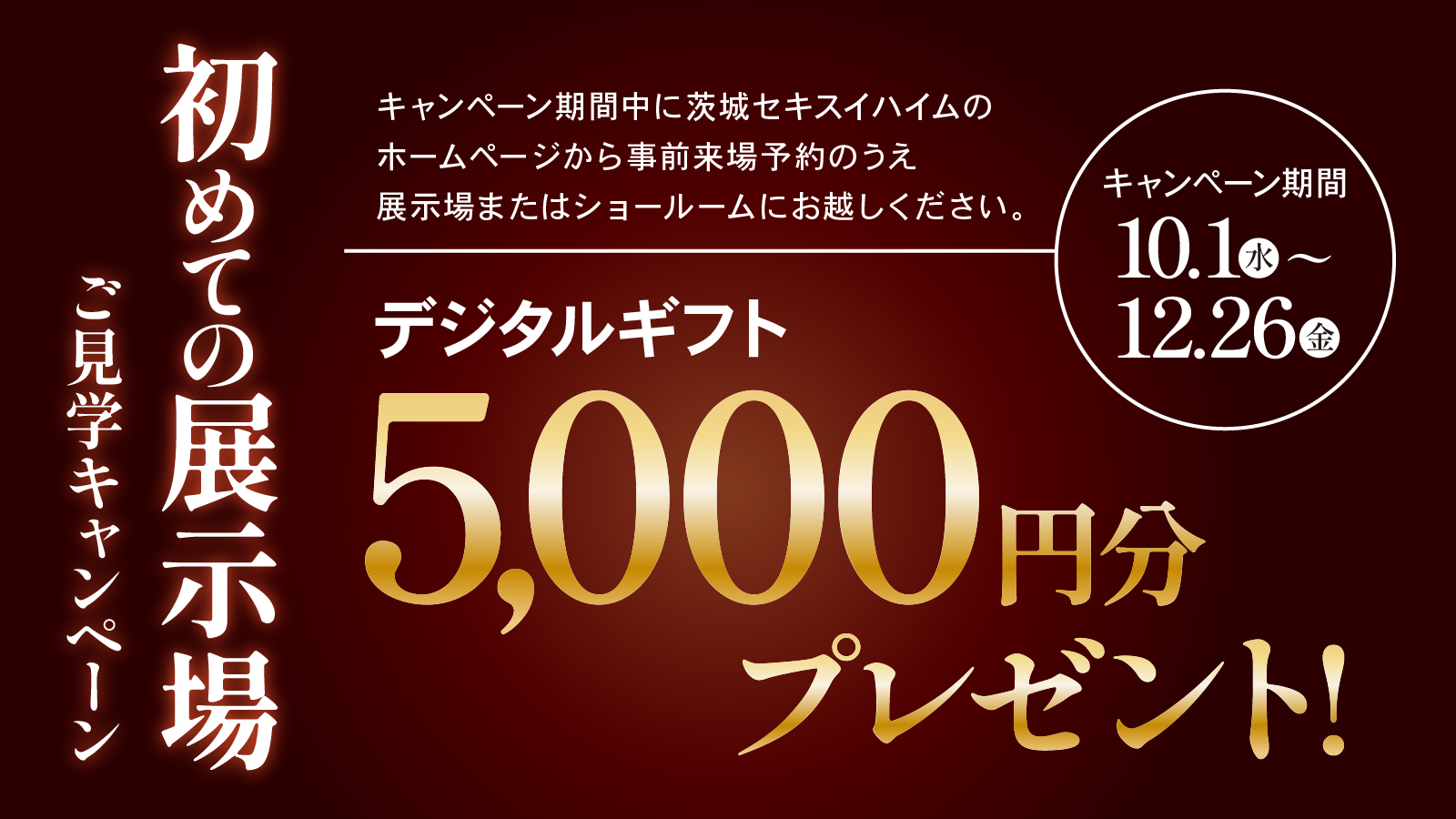 来場予約をしていただき、展示場へご来場頂いたお客様へデジタルギフト5000円をプレゼントいたします。