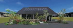 平屋らしい深い軒が描き出す心地の良い印影と水平ラインでスタイリッシュな外観デザイン。