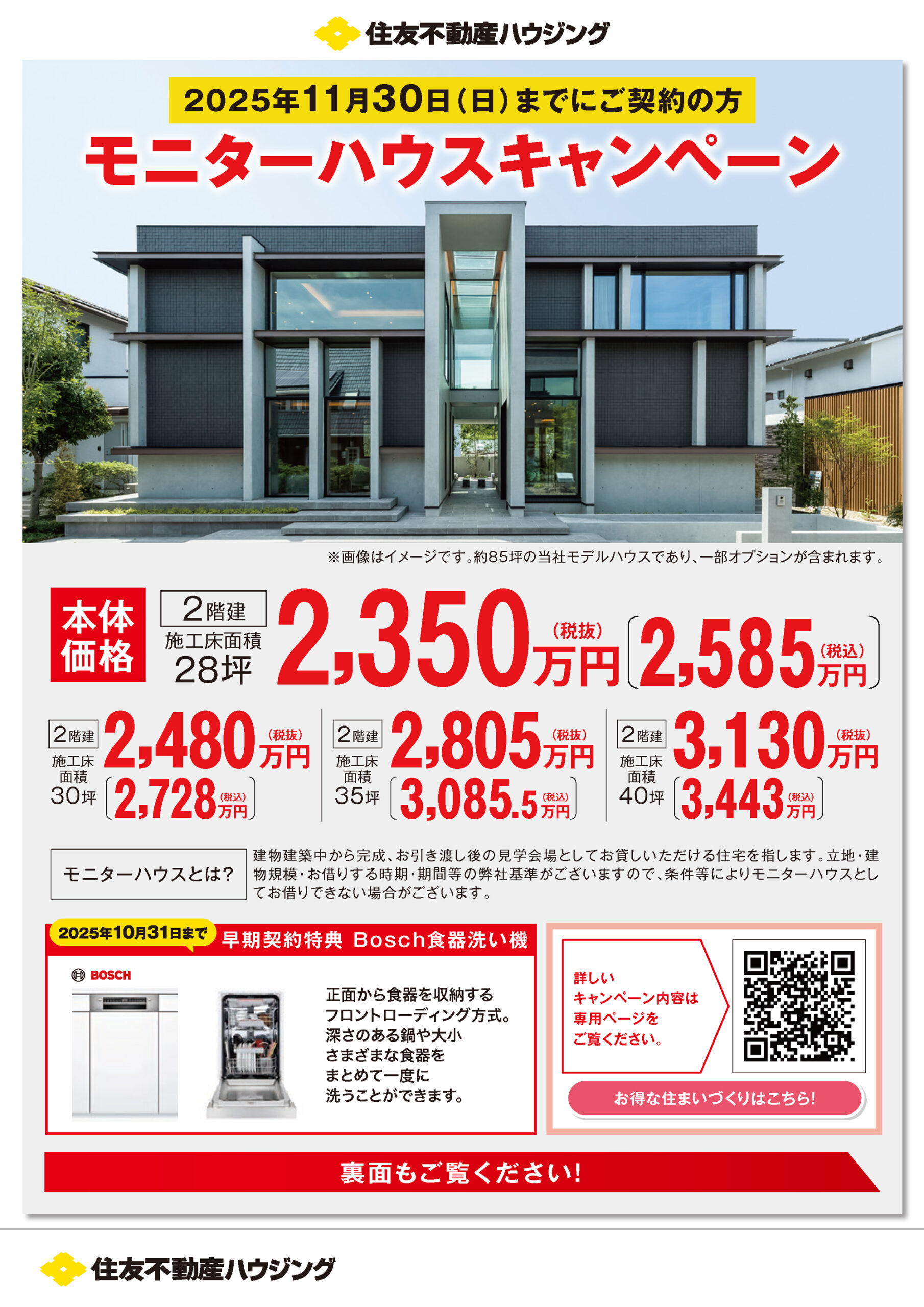 ただいま住友不動産ハウジングでは、モニターハウスキャンペーンをご用意しております!