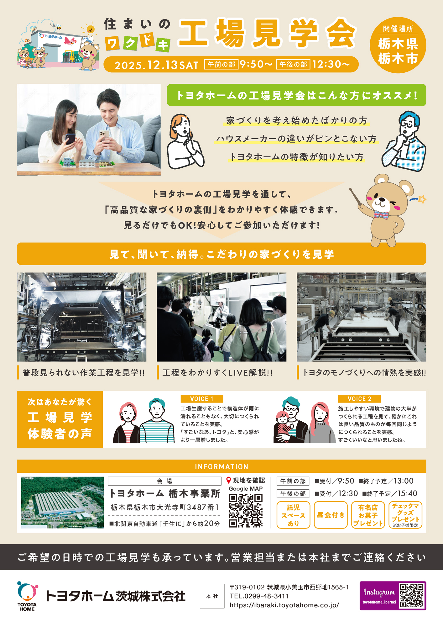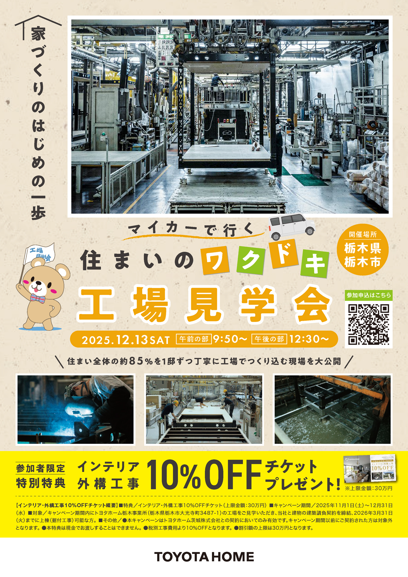 この機会に是非トヨタホームの工場見学にご参加下さい!