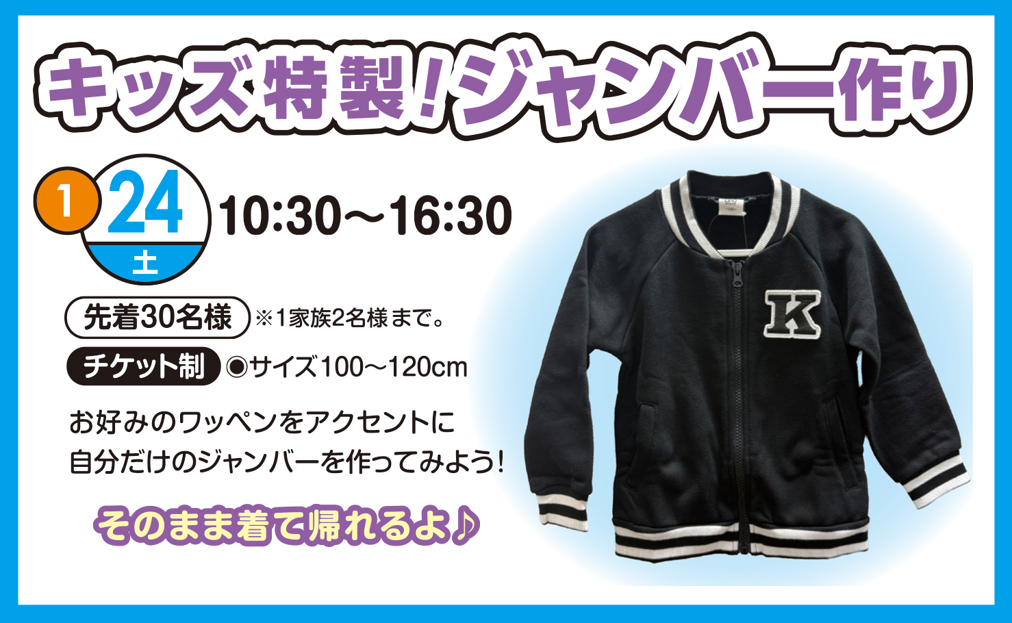 【2026年1月24日(土)】キッズ特製!ジャンパー作り